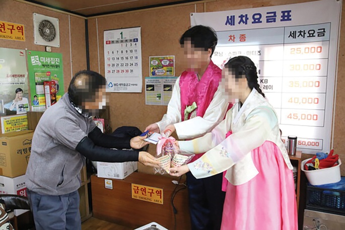 ¡ã½ÅõÁö ÀÎõ±³È¸ È«º¸´ÜÀÌ Áö¿ª»óÀε鿡°Ô º¹Á¶¸®¸¦ Àü´ÞÇÏ´Â ¸ð½À(Ãâó:¡¸ÃµÁöÀϺ¸¡¹)
