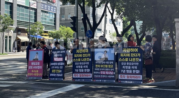 ÀçÆÇºÎ´Â ¡¿ªÇüÀ» ¼±°í¹ÞÀº ÇǰíÀÎ ÃÖ¹®ÀÚ, ½Å¼º¼ø, ±ÇÇõÁØÀÌ µµ¸ÁÇÒ ¿°·Á°¡ ÀÖ´Ù°í ÆÇ´ÜÇØ ±¸¼Ó¿µÀåÀ» ¹ßºÎÇß´Ù. ½Å¿ÁÁÖ´Â ÀçÆÇÀÌ ³¡³ª°í ¹æÃ»¿¡ ³ª¿Â ½ÅµµµéÀ» ÇâÇØ ¡°³î·¡Áö ¸»°í Çϳª´ÔÀÇ ÀÏÀÌÀݾơ±¶ó°í ´Ùµ¶¿´´Ù. ÇÑÆí, ¾à 20¿© ¸íÀÇ ÀºÇý·Î±³È¸ ½ÅµµµéÀÌ ÀçÆÇ ÀüÈÄ·Î ¼ö¿øÁö¹æ¹ý¿ø ¾È¾çÁö¿ø Àαٿ¡ Ç÷¡Ä«µå¸¦ °É°í ¡°½Å¿ÁÁÖ ¸ñ»ç ¹«ÁË ¼®¹æ Ã˱¸¡±¸¦ ¿ÜÃÆ´Ù.