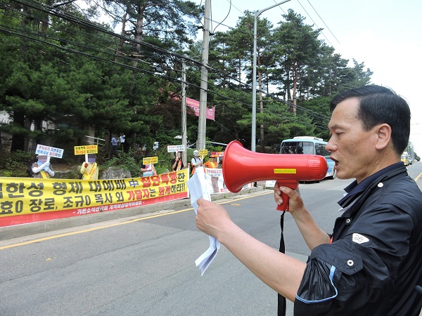 ±â»Û¼Ò½Ä°­³²±³È¸¿¡¼­ ÁÖÀϼ³±³¸¦ µè´ø ±èÇѼº À§¿øÀå(±â»Û¼Ò½Ä¼±±³È¸°³Çõºñ»ó´ëÃ¥À§¿øÈ¸, ±â¼Ò¼±°³Çõºñ´ëÀ§)ÀÌ Áö³­ 5¿ù 10ÀÏ ±â»Û¼Ò½Ä°­³²±³È¸ ½Åµµµé¿¡°Ô ÆøÇàÀ» ´çÇß´Ù. ±è À§¿øÀåÀÌ ¹Ú¿Á¼ö¾¾ÀÇ ¹®Á¦Á¡À» ÁöÀûÇÏ¸ç ±â»Û¼Ò½Ä°­³²±³È¸ ¾Õ¿¡ Áýȸ½Å°í¸¦ Ç߱⠶§¹®ÀÌ´Ù.