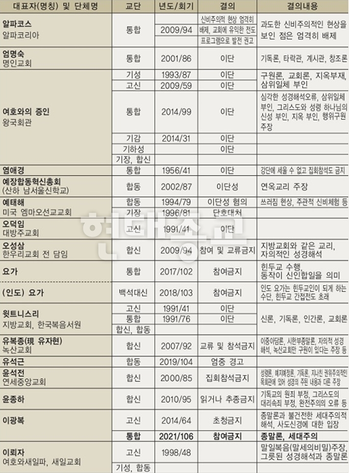 2021³â °¢ ±³´Ü ÃÑȸ°¡ ¸¶¹«¸®µÆ´Ù. °¢ ±³´Ü ÀÌ´Ü»çÀ̺ñ´ëÃ¥À§¿øÈ¸(ÀÌ´ëÀ§)´Â ¿©·¯ ´Üü¿Í °³Àο¡ ´ëÇØ ¿¬±¸¡¤º¸°íÇϰí, ÃÑȸ¿¡¼­ ÀÌ´Ü ¹× ¸» ¸¹Àº ´Üü¿¡ ´ëÇØ °áÀÇÇϰí ÇØÁöÇß´Ù. °¢ ±³´Üº° °áÀÇ ³»¿ëÀº ´ÙÀ½°ú °°´Ù.